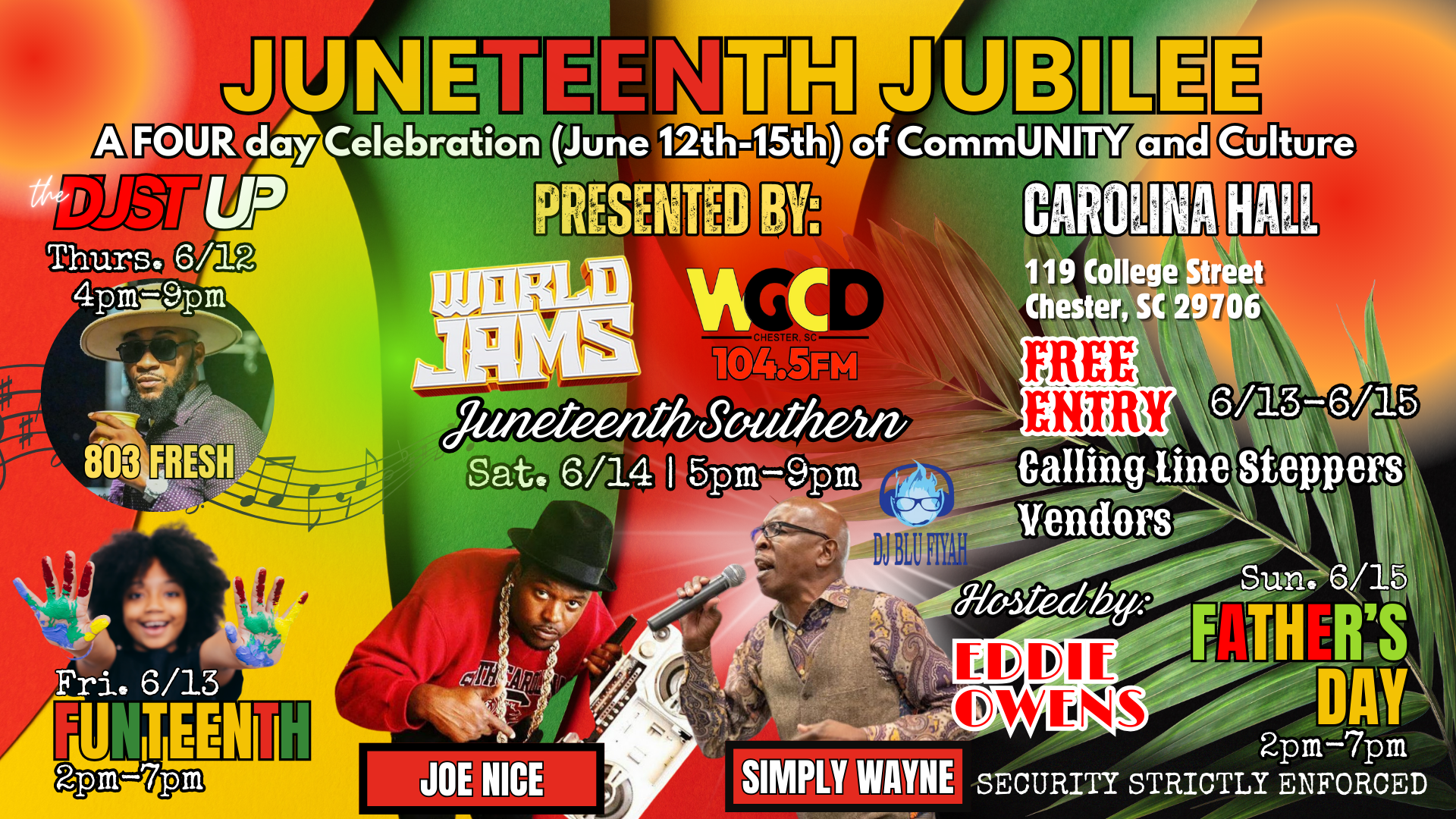 We are thrilled to announce that the relocated Juneteenth event landing in Chester, SC